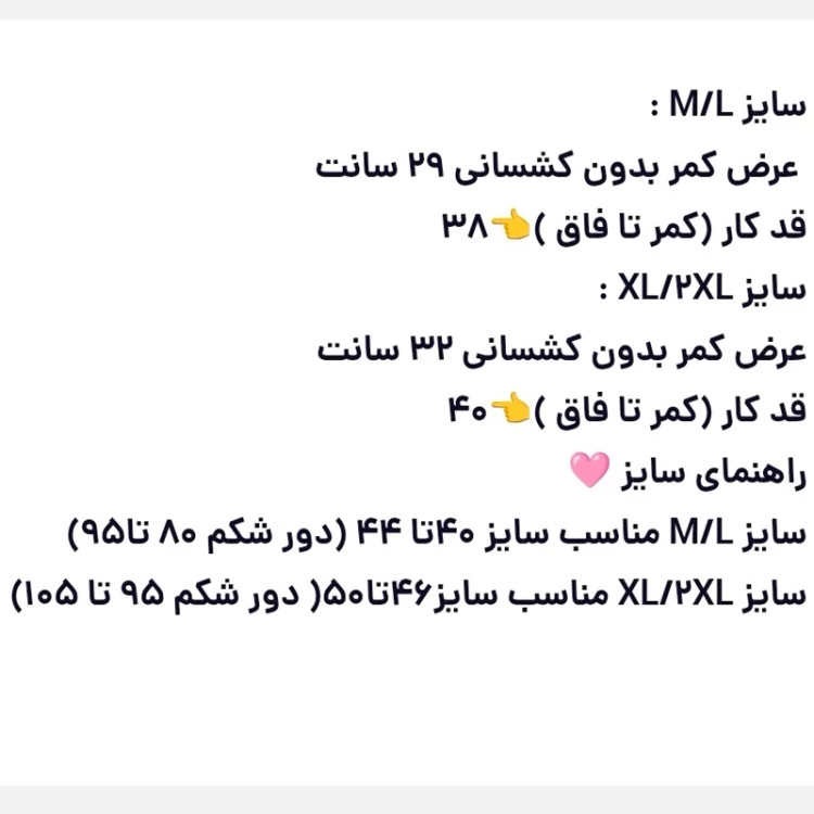 گن اسلیپ اورجینال وارداتی برند اسپاچ با 4 فنر به هیچ وجه لول نمیشه 💯 دوخت فلت و بسیار با کیفیت 👌 پشت گن هم لیفت کننده 🍑 داره کشسانی عالی با کش فوقالعاده محکم که تغییر شکل نمیده😍 واسه جمع کردن شکم و پهلو و زیر شکم مناسبه واسه بعد از زایمان برای جلوگیری از افتادگی شکم عالیه و حتی تو ورزش هم میتونی واسه کاهش سایز استفاده کنی 💪 سایز M/L : عرض کمر بدون کشسانی 29 سانت قد کار (کمر تا فاق )👈38 سایز XL/2XL : عرض کمر بدون کشسانی 32 سانت قد کار (کمر تا فاق )👈40 راهنمای سایز 🩷 سایز M/L مناسب سایز 40تا 44 (دور شکم 80 تا95) سایز XL/2XL مناسب سایز46تا50( دور شکم 95 تا 105) برای انتخاب سایز مناسب و توضیحات بیشتر👇 👈بخش گفت و گو در خدمتتون هستیم 🌹