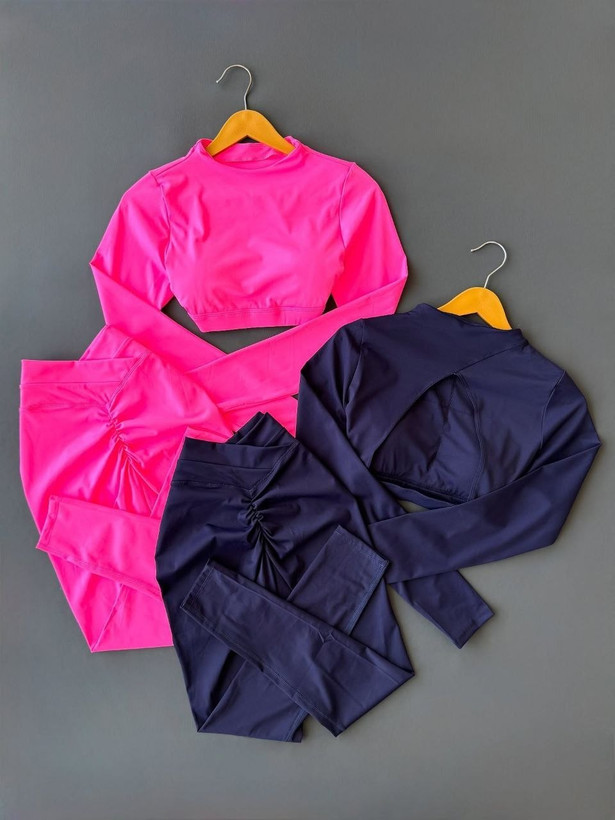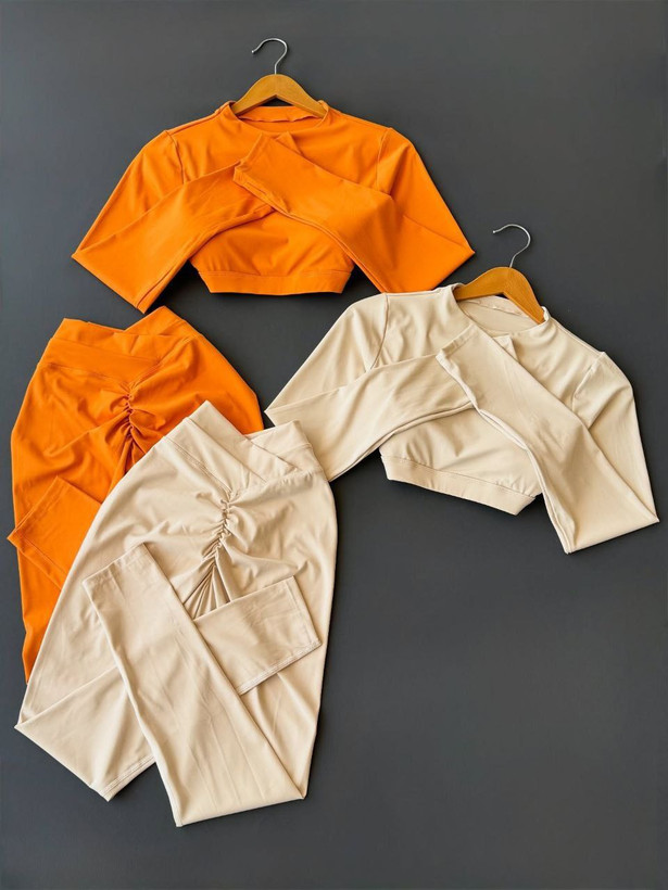 ست کراپ و لگ ورزشی فلامنت حرفه ای آستین فینگردار لگ پشت چیندار (جوری شاپ)