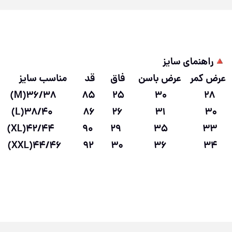 دنبال یه لگ با کیفیت واسه باشگاه و بیرون هستی 👌 یا واسه یه مهمونی یا دورهمی و کافه گردی 😍 لگ فلامنت اسلیم افکت با کمر پهن و گنی 💯 و دو تا فنر که نمیزاره شکمت باعث لول شدنش بشه 🥹 پشت کار هم لیفت کننده با سن داره که هلویی تر میکنه 🍑 اندامتو کشسانی بالا همراه تنخور بسیار جذابی هم داره دوخت چهارسوزنه و محکم کنار جنس لطیف و لختش باعش میشه کاملا تو تن بشینه و راحتی فوق العاده ای رو کنی 👌 تنخور ژورنالی این مدل رو هم میتونی تو گفت و گو ببینی و بهتر انتخاب کنی 🤗 🔺راهنمای سایز عرض کمر عرض باسن فاق قد مناسب سایز 28 30 25 85 36/38(M) 30 31 26 86 38/40(L) 33 35 29 90 42/44(XL) 34 36 30 92 44/46(XXL)