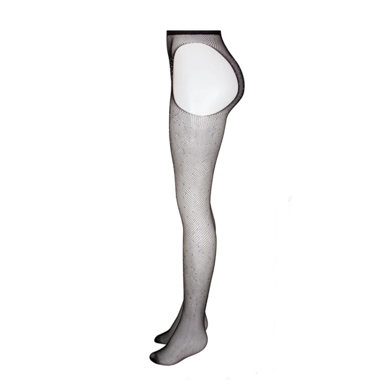 جوراب شلواری فیشنت نگین دار مشکی فاق باز فری سایز تا 50 (جوری شاپ)