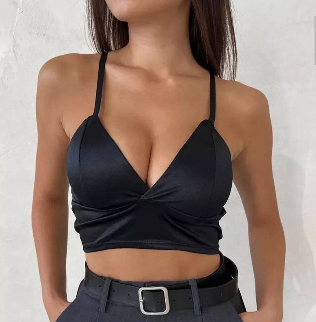 کراپ ساتن دخترانه کاپ اسفنجی فری سایز تا38(جوری شاپ)