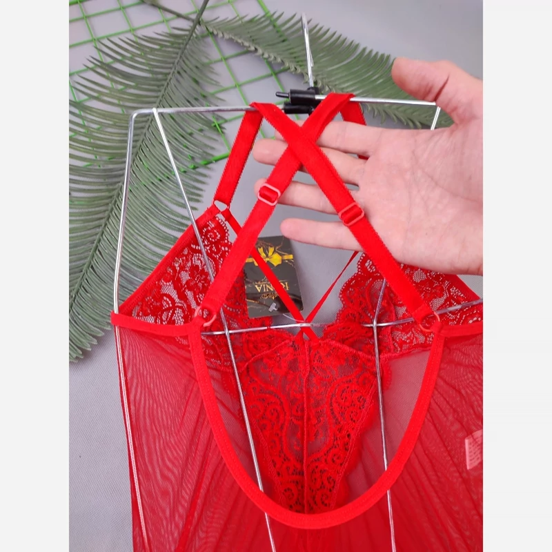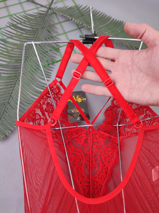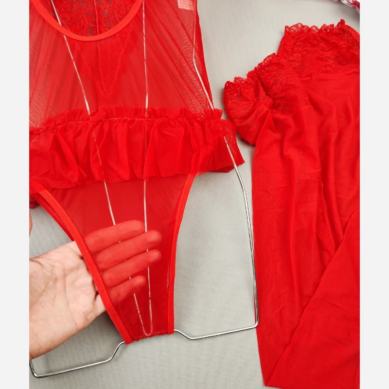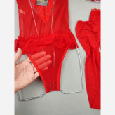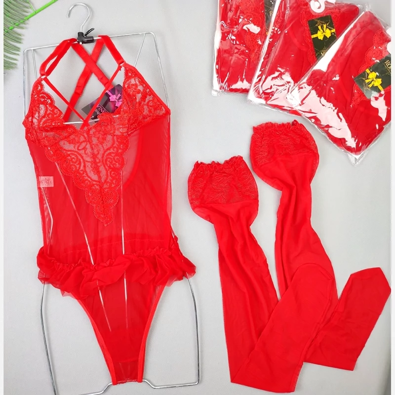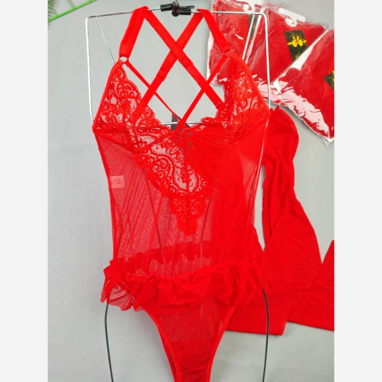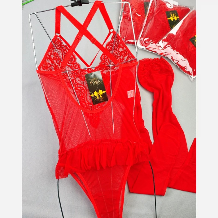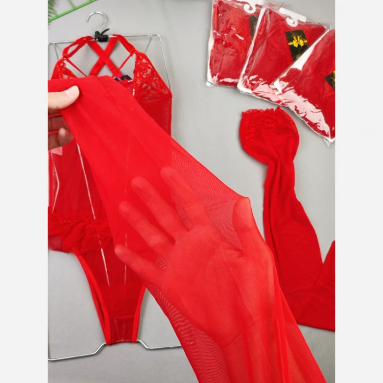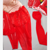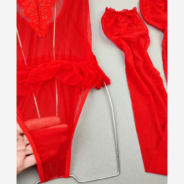 بادی فانتزی حریر و گیپور مدل جوراب دار رنگ قرمز (جوری شاپ)